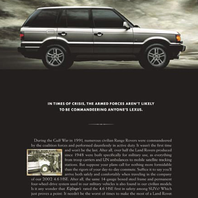 Client: Land Rover of North America Category: Consumer Magazine / Magazine Color Full Page or Spread: Single