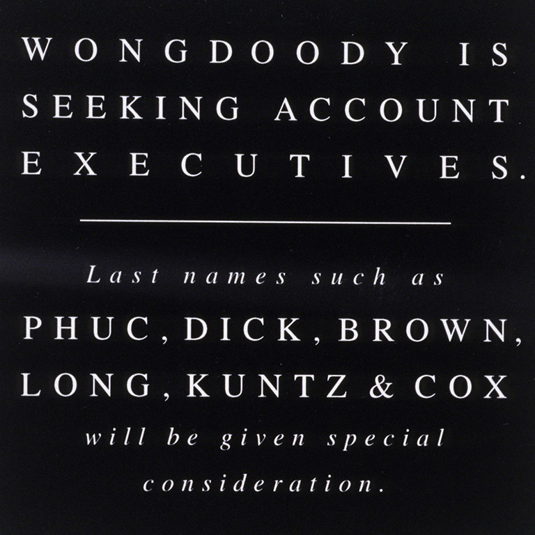 Client: WONGDOODY Category: Collateral Advertising / Collateral: Self-Promotion
