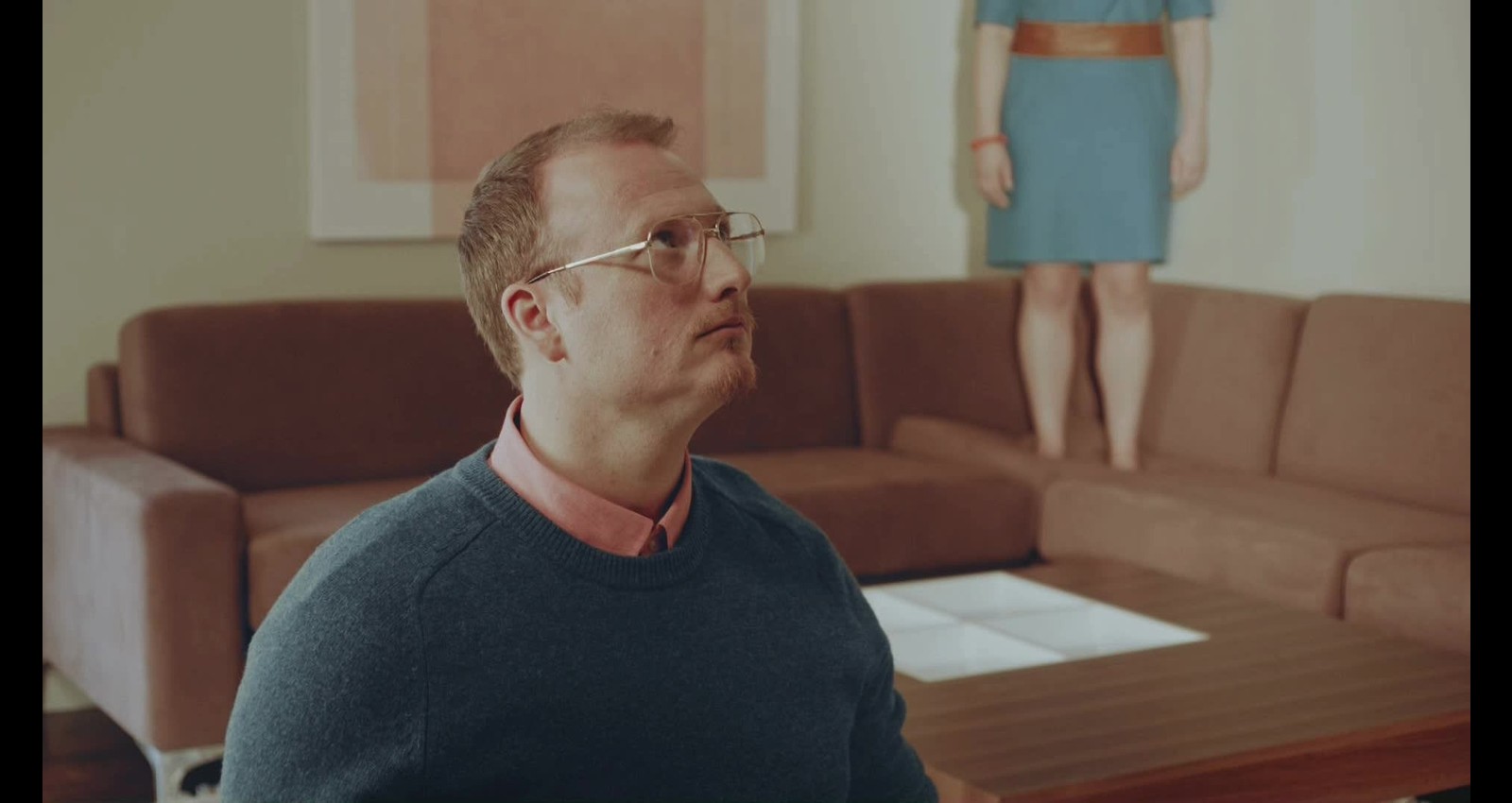 Each piece features prospective homebuyers in the midst of an enigmatic home buying ritual. One man showers fully clothed. A couple shouts nonsense at the ceiling. Another couple breathes in the floor boards deeply. Each one is more eccentric than the last - and that’s intentional.